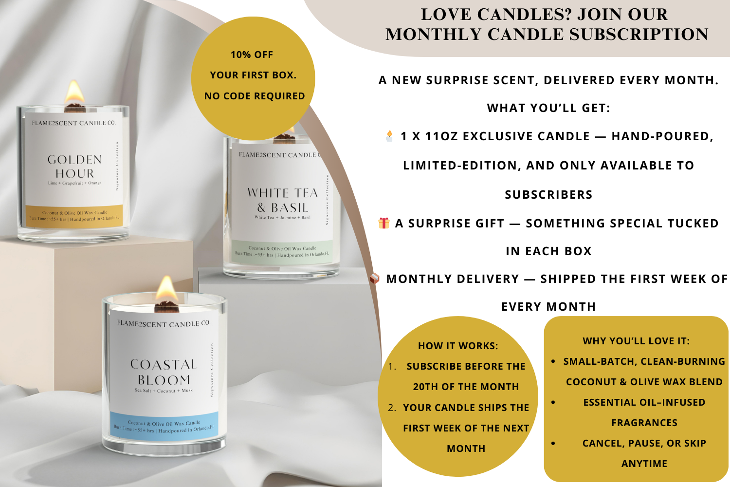 Discover our artisan-crafted, non-toxic candles and home fragrances — designed for healthier homes and happier moments. Each piece is hand-poured with premium fragrance blends that transform any space into a cozy retreat.